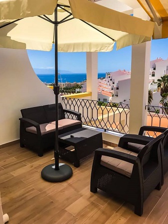 Renovated one bed-room apartment in Costa Adeje, in zona Torviscas Alto with large terrace and amazing ocean view, comunal swimming pool and situated 800 meters from the closest beach Playa Pinta.